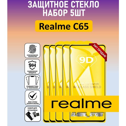 Комплект 5 в 1: Защитное полноэкранное стекло для Realme C65 ( 5 шт ) Реалми Ц65 Full Glue