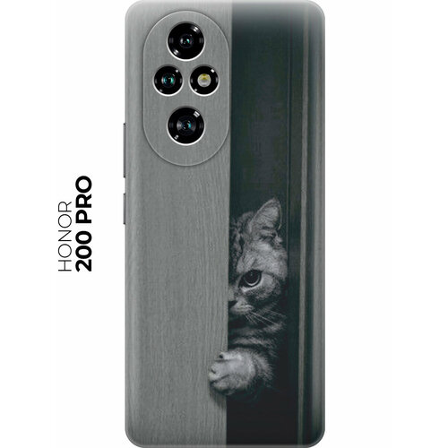 Силиконовый чехол на Honor 200 pro с принтом "Подглядывающий котик"