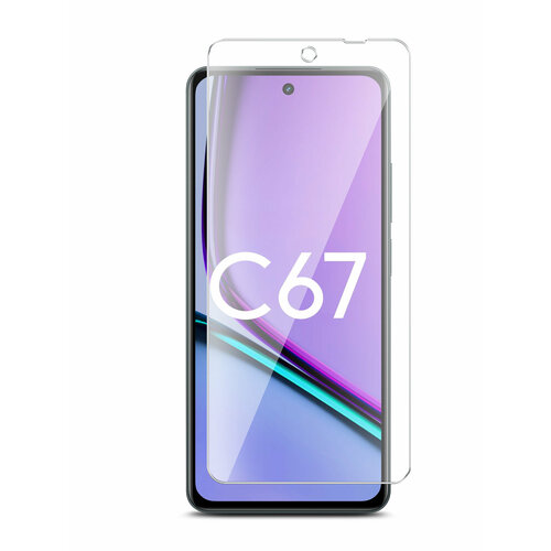 Защитное стекло для Realme C67 4G (Риалми С67 4г) на Экран, (гибридное: пленка+стекловолокно), прозрачное силиконовая клеевая основа тонкое Hybrid Glass, Brozo