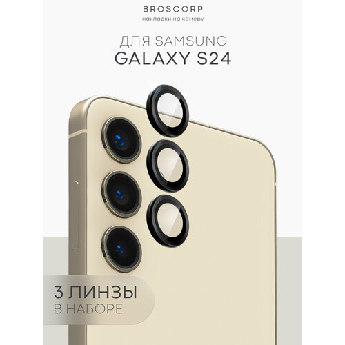 Защитные стекла на камеры Samsung Galaxy S24 (Самсунг Галакси С24), бренд BROSCORP, с чёрной рамкой
