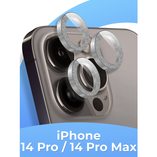 Стекла (линзы) для камеры на iPhone 14 Pro, 14 Pro Max / Набор стекол 3шт. на камеру с блестками, Серебро