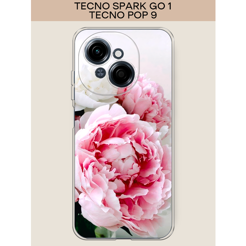 Чехол на Tecno Spark Go 1/Pop 9 / Текно Спарк Go 1/Поп 9 с принтом Розовые и белые пионы