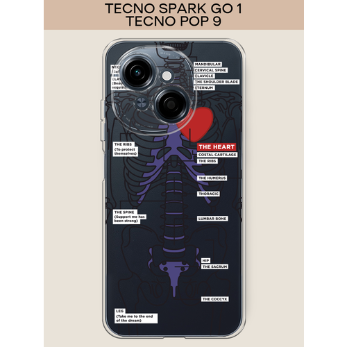 Чехол на Tecno Spark Go 1/Pop 9 / Текно Спарк Go 1/Поп 9 с принтом Скелет человека, прозрачный