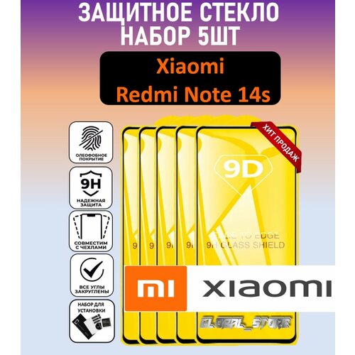 Комплект 5 в 1: Защитное стекло для Xiaomi Redmi Note 14S ( 5 шт ) Ксяоми Редми Нотэ 14с стекло с рамкой Full Glue