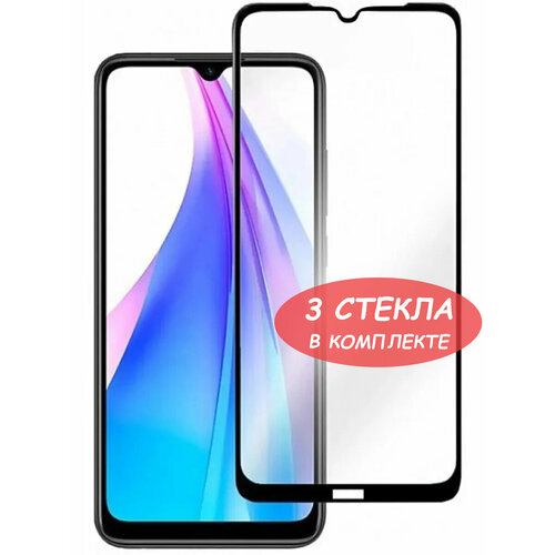 Защитное стекло "Полное покрытие" для Xiaomi Redmi Note 8/Note 8 (2021)/ ксиаоми ноут 8/ ноут 8 (2021) Черное - 3 стекла в комплекте