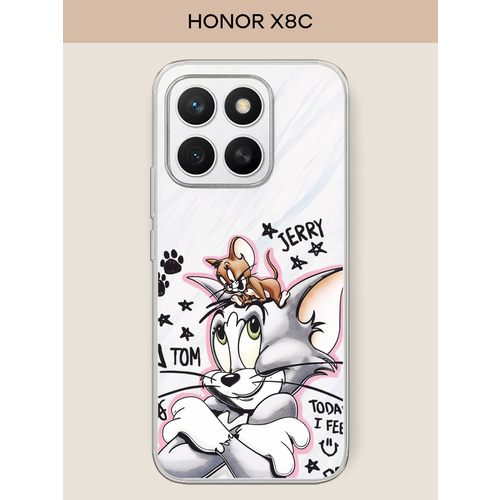 Чехол на Honor X8c / Хонор X8c с принтом Том и Джерри рисунок 2, прозрачный