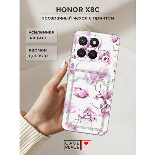 Чехол на Honor X8c (Хонор X8c) с картой и принтом Искусственные цветы