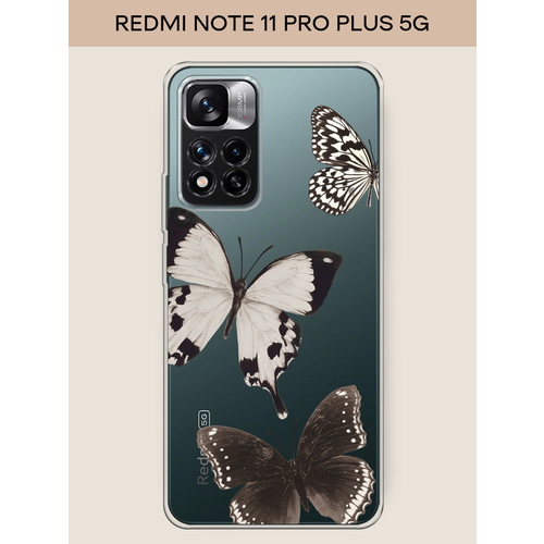 Силиконовый чехол "Три монохромные бабочки" на Xiaomi Redmi Note 11 Pro Plus 5G / Сяоми Редми Нот 11 Про Плюс 5G, прозрачный