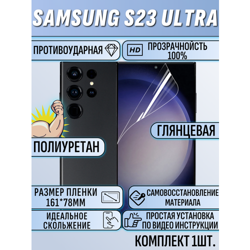 Гидрогелевая пленка Samsung S23 Ultra защитная глянцевая весь экран