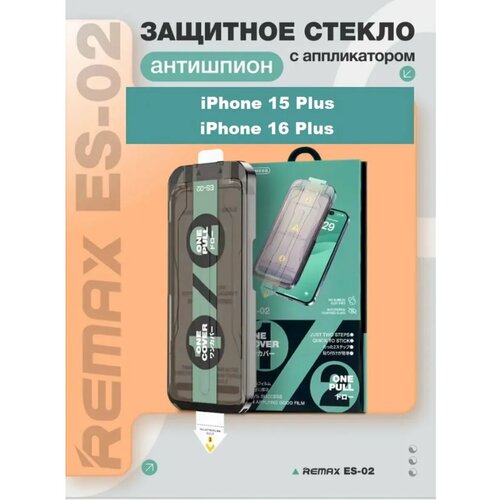 Стекло защитное Remax "Антишпион" ES-02, для iPhone 15 Plus / 16 Plus, с авто установкой, черное