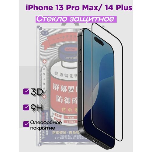 Защитное стекло Remax Iphone 13 Pro Max/ Iphone 14 Plus, черное, прозрачное, 3D, 9H