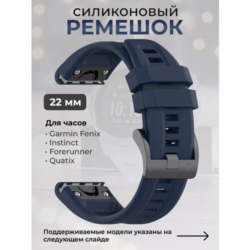 Силиконовый ремешок для Garmin Fenix / Forerunner / Approach / Descent, 22 мм, cеребристая пряжка, ночной синий