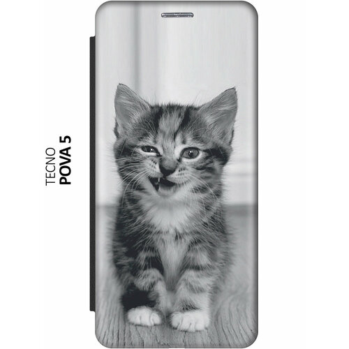 Чехол-книжка Котенок с ухмылкой на Tecno Pova 5 / Техно пова 5 черный