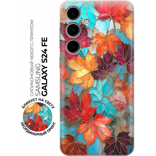 Силиконовый чехол на Samsung Galaxy S24 FE с принтом "Осенняя симфония в витражном исполнении"