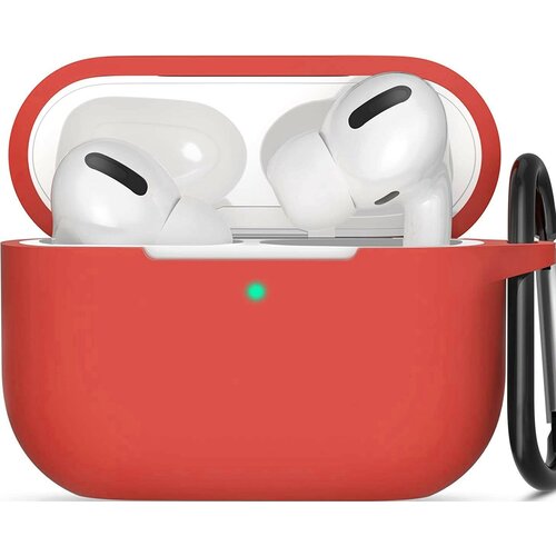 Ультратонкий силиконовый чехол для беспроводных наушников Apple AirPods Pro 2 с карабином / Матовый защитный чехол на Эпл Аирподс Про 2 / Красный