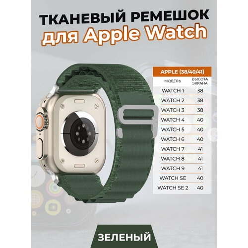Тканевый ремешок для Apple Watch 1-9 / SE (38/40/41 мм), зеленый