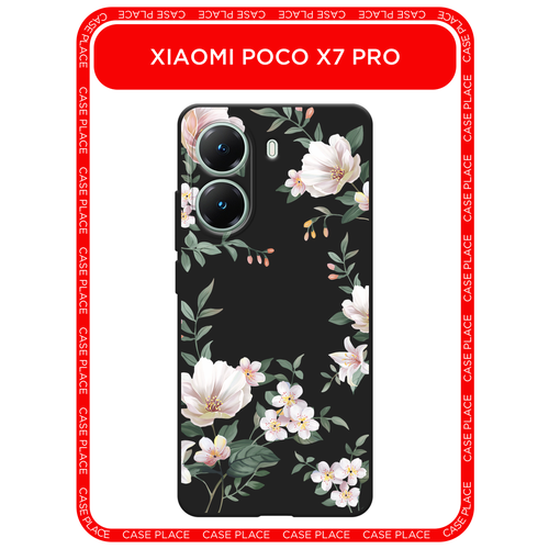 Черный матовый чехол на Poco X7 Pro / Поко X7 Про с принтом Beautiful white flowers