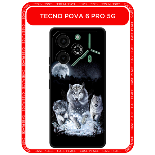 Черный матовый чехол на Tecno Pova 6 Pro 5G / Текно Пова 6 Про с принтом Стая волков под луной