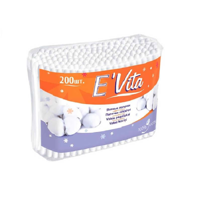 Палочки ватные E'Vita п/э упаков 200 шт/уп BC-081-F200-001, (3шт.) 100058225605
