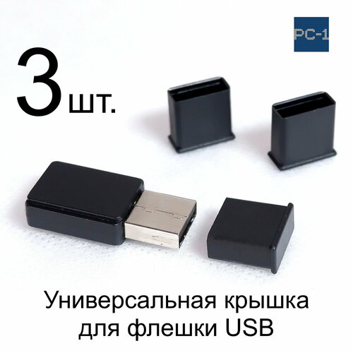 3 шт. Универсальная крышка для флешки USB Black. Жесткая. Подходит под все USB Flash накопители или на любой разъём USB male. Цвет Черный .