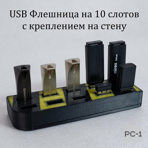 Органайзер для Флеш накопителей на 10 слотов с креплением на стену. Настольный держатель для USB флеш-накопителей 120x36x17мм для USB Flash накопител