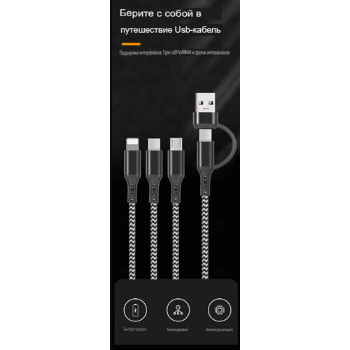 Кабель зарядки для телефона, 4 в 1, USB + Type-C, с разъемами Apple Lightning и Type C