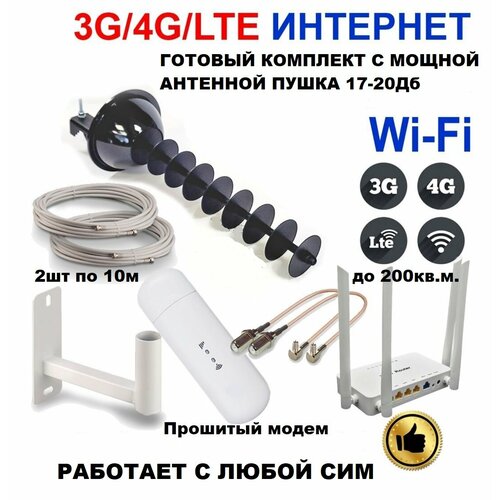 Супермощный Комплект Интернет на дачу 3G/4G LTE с антенной, модемом и WIFI роутером, 20км до вышки!