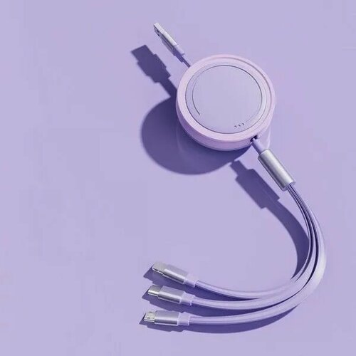 Кабель Rock 3в1 USB USB Type C microUSB Lightning с быстрой зарядкой 6A 100W прозрачный штекер 150 см. пурпурный