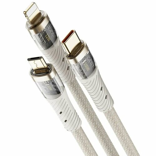 Кабель Rock 3в1 USB USB Type C microUSB Lightning с быстрой зарядкой 6A 100W прозрачный штекер 150 см. серый