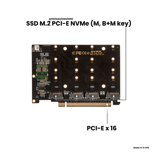 Адаптер-переходник / плата расширения для установки 2 накопителей SSD M.2 PCI-E NVMe (M key) в слот PCI-E 3.0 x8/x16 / NHFK N-R08C