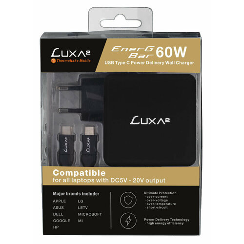Адаптер питания Thermaltake LUXA2 EnerG Bar 60W USB-C Power Delivery, 5 - 20 В, 3A, 60Вт, с устройствами USB Type-C, черный [po-ubc-pc60bk-01]