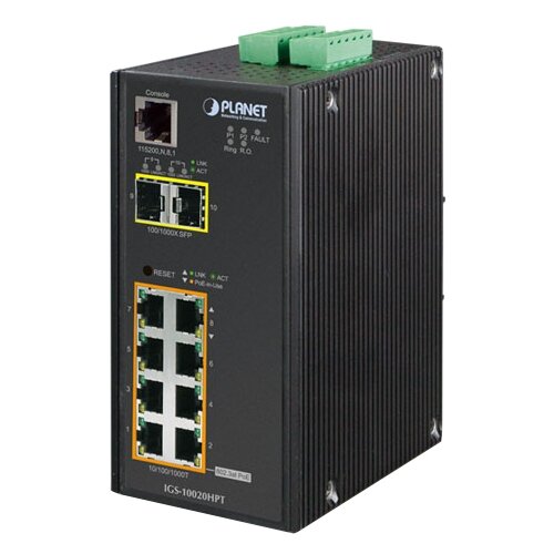 Коммутатор PLANET IGS-10080MFT (IP30 Industrial 8* 100/1000F SFP + 2*10/100/1000T Full Managed Ethernet Switch (-40 to 75 degree C), 1588)