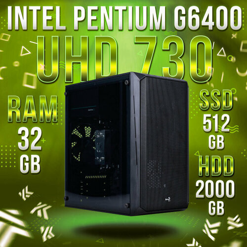 Intel Pentium Gold G6400, Intel UHD Graphics 610, DDR4 32GB, SSD 512GB, HDD 2TB