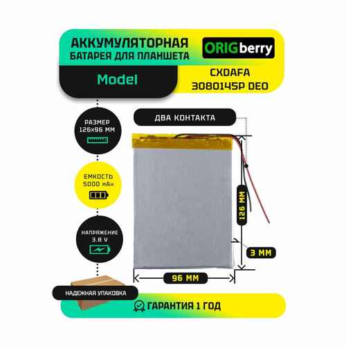 Аккумулятор (батарея) для планшета: CXDAFA 3080145P DEO 3,8 V / 5000 mAh / 126мм x 96мм x 3мм / без коннектора