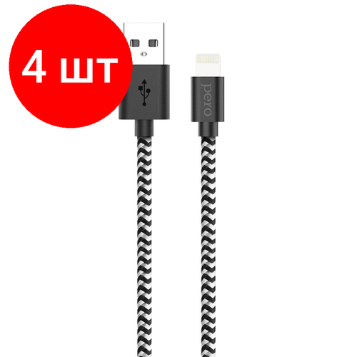 Комплект 4 штук, Кабель USB PERO DC-04 8-pin Lightning, 2А, 1м, Silver-black