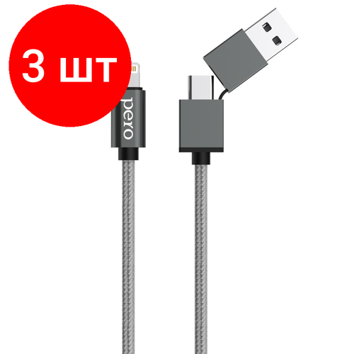 Комплект 3 штук, Кабель PERO, DC-07, 1м, Type-C/USB-A to Lightning, 20W, серый