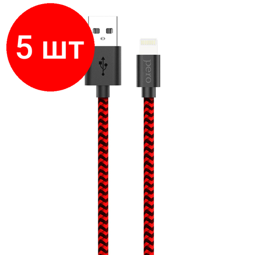 Комплект 5 штук, Кабель USB PERO DC-04 8-pin Lightning, 2А, 1м, Red-black