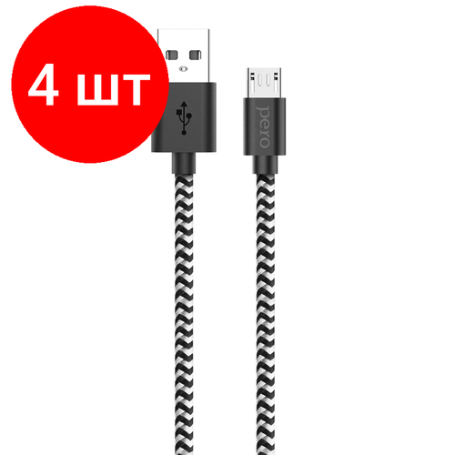 Комплект 4 штук, Кабель USB PERO DC-04 micro-USB, 2А, 2м, Silver-black
