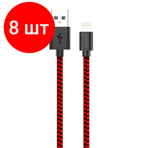 Комплект 8 штук, Кабель USB PERO DC-04 8-pin Lightning, 2А, 1м, Red-black