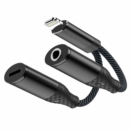 PERO Адаптер AD12 Lightning - Lightning / mini Jack 3.5 mm (Черный)