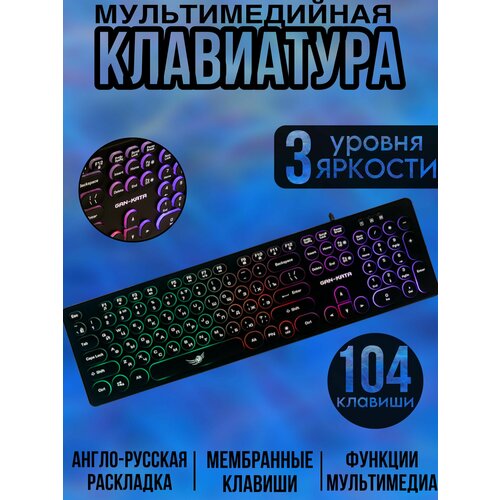 Игровая проводная клавиатура Gembird белая 104 клавиши подсветка Rainbow круглые клавиши кабелем 1.5 метра KB-240L-W