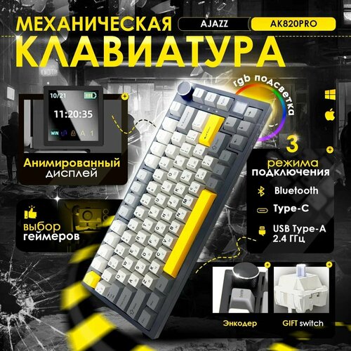 Механическая игровая клавиатура AJAZZ AK820 PRO Flying Fish Switch с подсветкой RGB, Русская раскладка, Желтый и серый