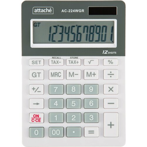 Калькулятор настольный комп Attache, AС-224WGR,12р, дв. пит, бел-сер,145x104x28