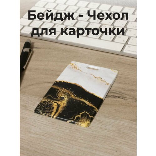 Бейдж для пропуска и карточки Мрамор золотой