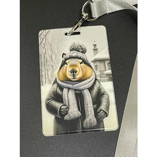 Чехол для бейджа карточки и пропуска с лентой Капибара в шапке
