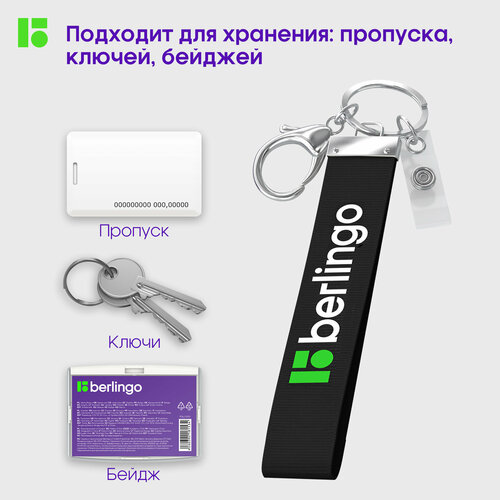 Держатель для бейджей Berlingo "ID 400", текстильный, 12см, с карабином и клипом, черный, 352200