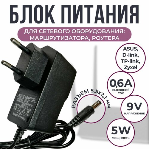 Блок питания для роутера TP-Link 9V 0.6A кабель 2 метра