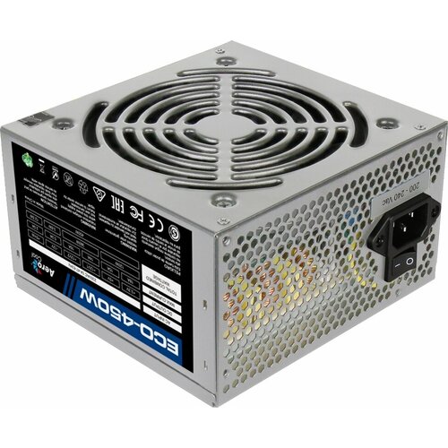 Блок питания Aerocool 450W Retail ECO-450W ATX v2.3 Haswell, fan 12cm, 400mm cable, power cord, 20+4P, 12V 4P, 1x PCI-E 6P, 2x SATA, 2x PATA, 1x FDD