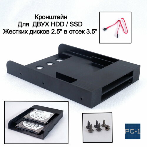 Кронштейн для двух жестких дисков 2.5" в отсек 3.5" HDD или SSD корзина съёмная в корпус ПК. Кабели SATA и винты в комплекте.