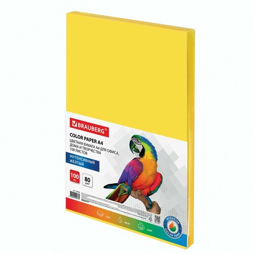Бумага цветная А4 Brauberg, интенсив желтая, 80 г/кв. м, 100 листов (112450), 5 уп.